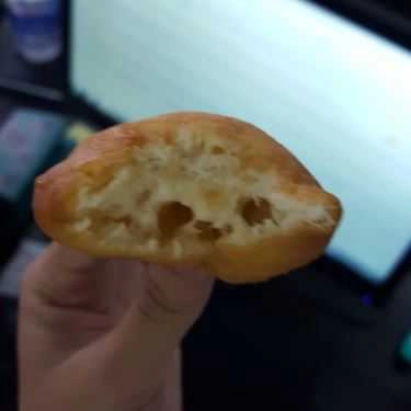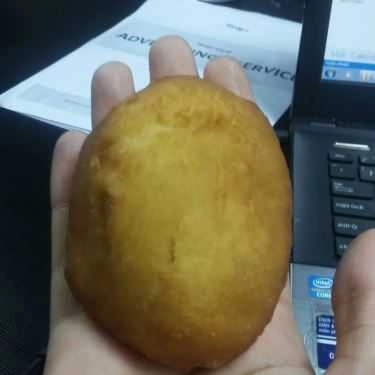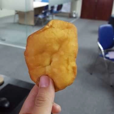Lâu lắm rồi mới ăn lại món này. Phòng mình ở gần quán nên đi ra vaig bước là có ăn à. Lúc trước thấy lạ lạ mà rẻ nên hay rủ bạn ăn lắm. Từ ngày lên kg mập ra là thấy đồ dầu mỡ là ngán lắm roài. Món này thích hợp ăn nhừng ngày đông se lạnh thì tuyệt cú mèo. Hôm nay trời mưa lạnh lạnh được anh trong công ty mua lên nên cũng ăn 1 cái cho zui. Vẫn bánh bơ ngày nào, giá 2k, mang về nên chủ quên cho tương chấm cũng thì phải. Ăn xong mà vẫn nghe mùi thơm.